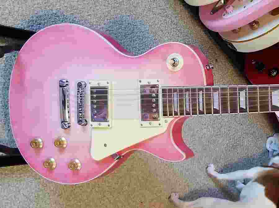 Custom built Les Paul wired as a 1962 Les Paul Standard. The custom pink sunburst finish can not be found on any other Les Paul in the world.